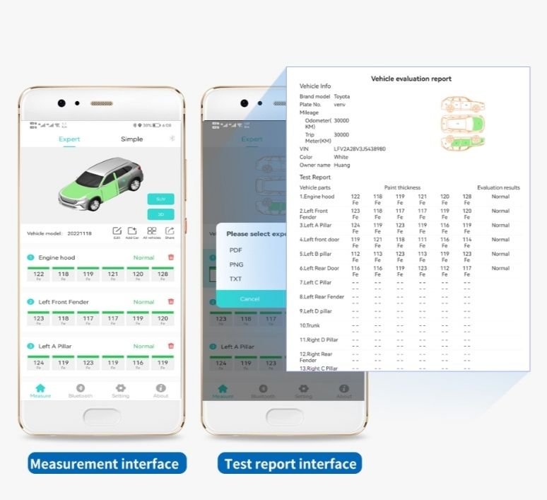 Android 6.0 ve üstü işletim sistemine uygundur, Demir, Çinko ve Alüminyum yüzeylerin boya kalınlığını ölçebilirsiniz,